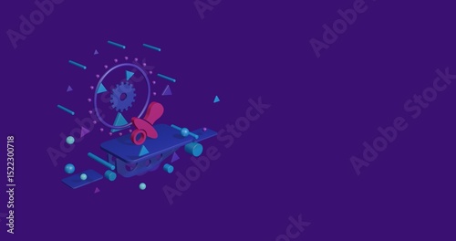 © Alexey, Obraz premium Pink nipple symbol on a pedestal of abstract geometric shapes floating in the air. Abstract concept art with flying shapes on the left. 3d illustration on deep purple background