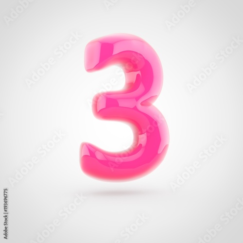 © Whitebarbie, Fototapeta premium Pink number 3 filled with soft light isolated on white background.