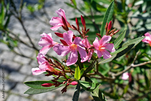 Fototapeta premium Pink oleander flowers (Nerium oleander) on garden