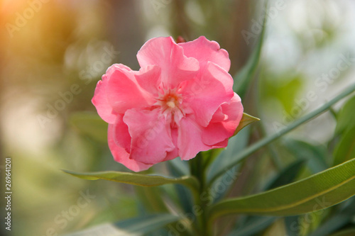 Obraz premium Pink oleander on a green background