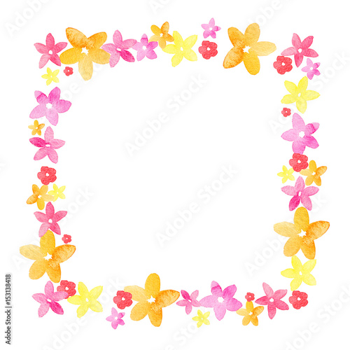 © wrongorright, Fototapeta premium pink,orange,yellow ,red wildflower meadow and bindweed spring flowers square frame. Decorative element for greeting card, textile, paper, wallpaper, craft, package, label, logo