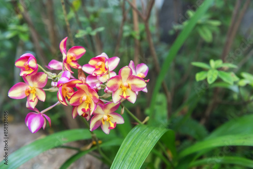© Blanscape, Obraz premium Pink Orchid flower or Spathoglottis plicata Blum blossom
