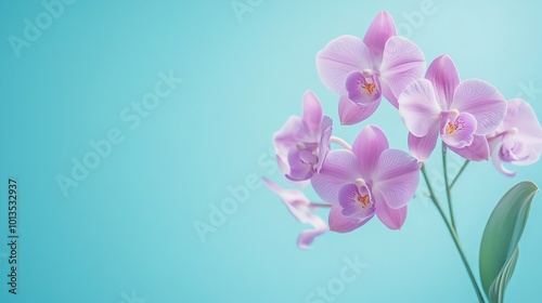© Rstm, Fototapeta premium Pink orchid flowers on a blue background.