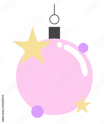 Obraz premium Pink ornament is hanging in flat design, black cap, stars and circles on transparent background
