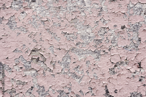 © yanik88, Naklejka premium Pink paint coating with cracks on a dirty gray stone. Peeling pink paint Grunge