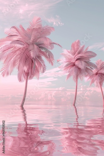 Naklejka premium Pink Palm Trees Reflecting in Water