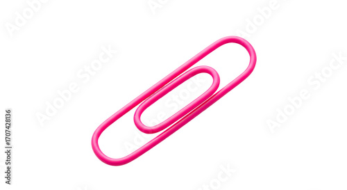 Obraz premium Pink paperclip on white background.