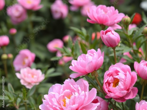 Obraz premium Pink peony flowers arranged in a beautifully vibrant background, summer, spring