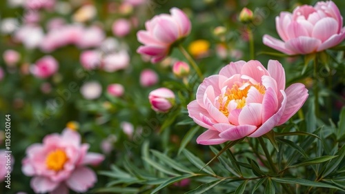 Fototapeta premium Pink peony flowers creating a beautiful and delicate background, spring, vibrant, nature