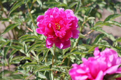 Obraz premium Pink peony flowers. Cultivar from double flowered garden group