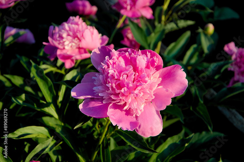 Fototapeta premium Pink peony flowers on sunset