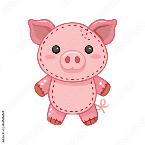 © Fizza, Fototapeta premium Pink Pig Animal with Cute Snout as Sewed Stuffed Toy for Kids Playing