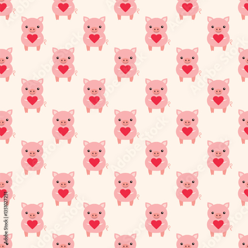 Obraz premium Pink pig seamless pattern vector illustration