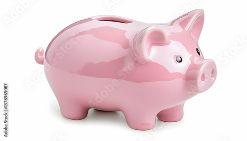 © CHURIN, Obraz premium Pink piggy bank isolated on white background (1) AI generative