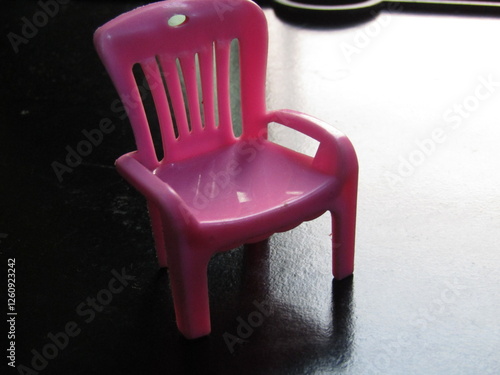 © Background.cc, Fototapeta premium Pink plastic chair on a black background. Selective focus. Copy space.