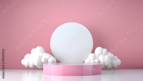 Fototapeta premium Pink Podium with Heart-Shaped Clouds - Valentine's Day Backdrop