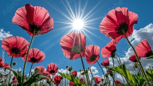 Fototapeta premium Pink Poppies Under Sunny Sky