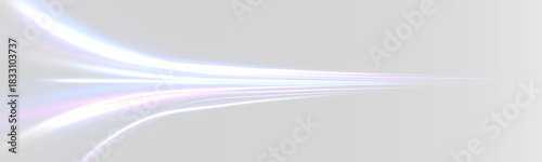 © Ole moda, Naklejka premium Pink, purple neon speed lines curl, spiral over luminous white surface. Flowing violet, blue light ribbons trace fast digital motion energy. Futuristic police abstract illustration presented in png.