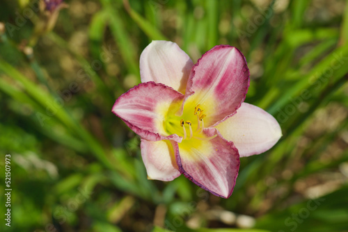 Obraz premium Pink Purple Yellow Lily growing in home garden