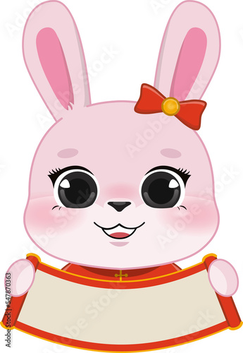 © titaporn, Naklejka premium Pink Rabbit Girl Holding Chinese paper rolling sign flat icon design