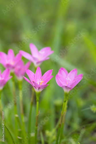 Fototapeta premium Pink rain lilies (Zephyranthes sp.) in Sarasota Florida. Genus ID is tentative.