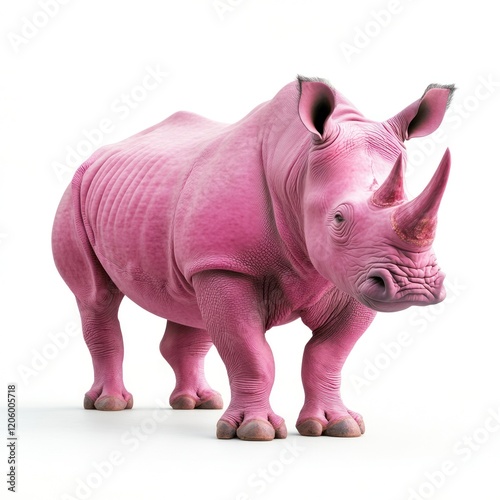 Fototapeta premium Pink rhino, studio shot, white background, animal illustration, children's book