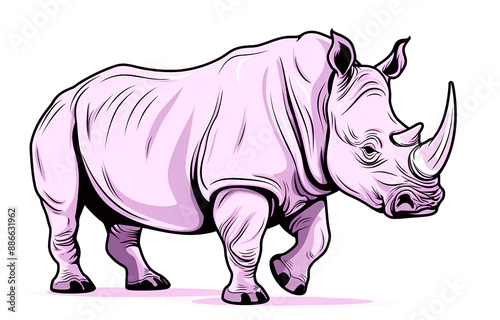 © Rassamee, Obraz premium Pink rhino with black stripes For logos and various designs, white background