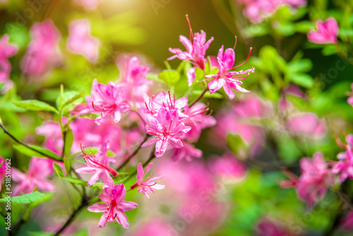 Obraz premium pink rhododendron blooms in the Botanical garden