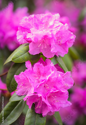 © Ingus Evertovskis, Fototapeta premium Pink rhododendron blossoms with a beautiful blur. Rhododendron hybridum.