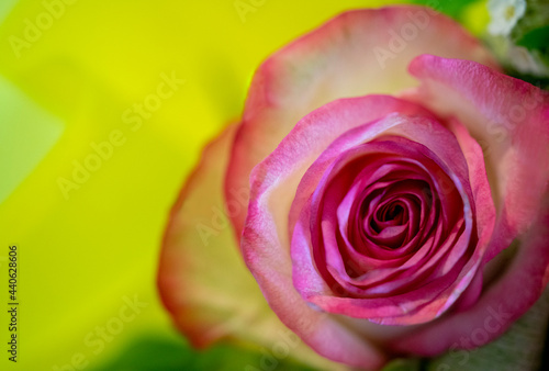 © Ірина Рябець, Fototapeta premium pink rose on yellow background