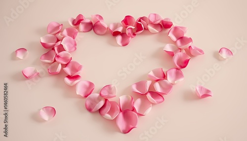 Fototapeta premium Pink Rose Petals Arranged in a Heart Shape on a Light Pink Background...