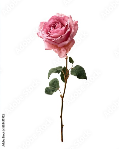 © Ione, Naklejka premium Pink rose, stem, leaves, isolated