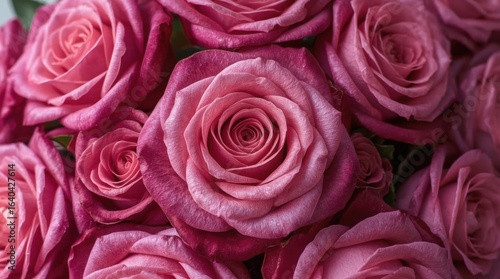 Obraz premium Pink Roses in Bloom: A Close-Up of Nature's Beauty and Botanical Floral Arrangement in Romantic Garden Decor