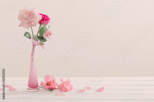 Fototapeta premium Pink roses in vase on white background