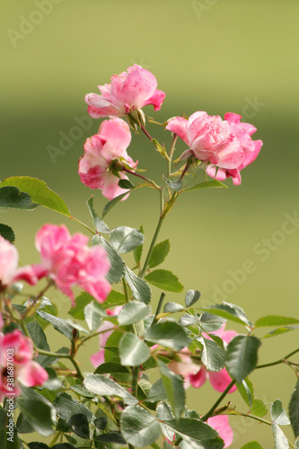 Fototapeta premium Pink roses on a green background