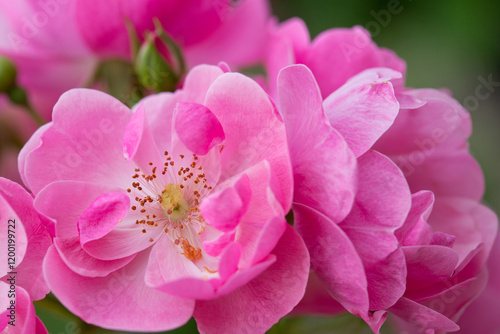 © Swetlana Wall, Fototapeta premium Pink roses on green blur background .