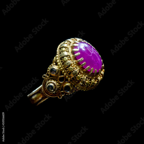 Fototapeta premium Pink ruby on gold ring, Vintage ring, Goldsmith of Thailand.