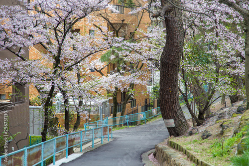 Naklejka premium Pink sakura cherry blossom full bloom in Tokyo