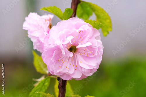 Obraz premium Pink sakura flower on a tree close up, sakura blossom