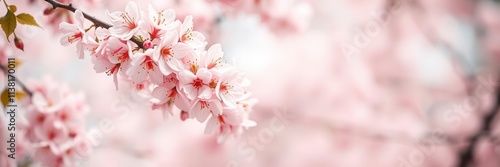 Obraz premium Pink sakura petals falling gracefully creating a dreamy background, floral,...