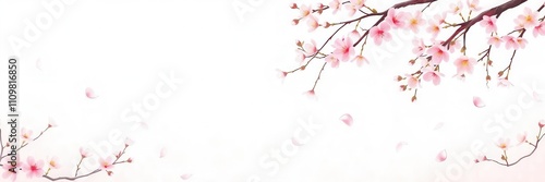 Fototapeta premium Pink sakura petals gently falling against a blurred background, delicate, beauty