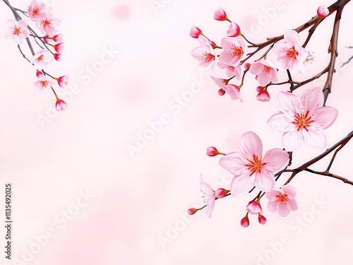 Fototapeta premium Pink sakura petals gently falling in a soft and dreamy background, festive,...