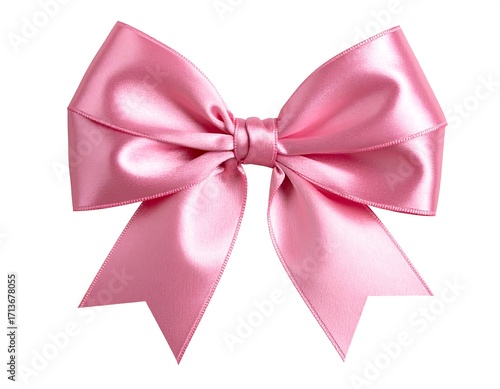 © bakso, Naklejka premium Pink satin ribbon bow on white