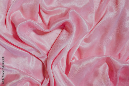© Katsiaryna, Obraz premium pink silk fabric background with heart. Valentine's day concept