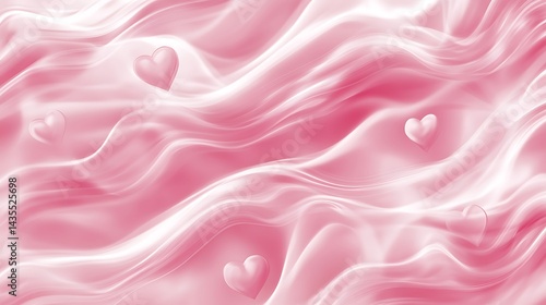 Obraz premium Pink Silk Waves with Hearts Background.