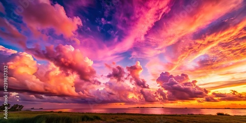 © Four888, Fototapeta premium Pink Sky Horizon with Dreamy Clouds at Sunset
