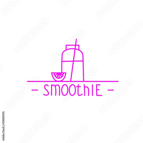 © Elena Titova, Obraz premium Pink smoothie - hand drawn brush text badge, sticker, banner, po