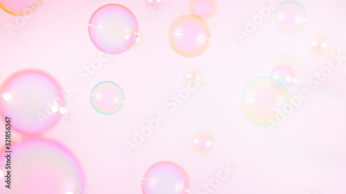 © Siwakorn1933, Obraz premium Pink soap bubbles sweet valentine's day background