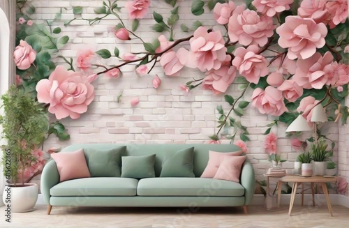 © Mix Stock Ai catego, Obraz premium pink sofa and flowers