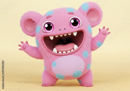 © Shah Putra, Fototapeta premium Pink Spotted Monster with Open Mouth